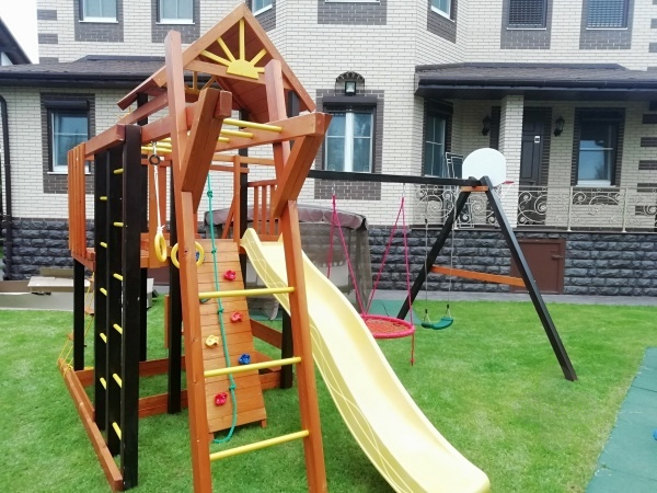 Ищете уникальное оборудование для приусадебного участка или городского двора? Присмотритесь к игровой площадке «Марк 2». Этот комплекс отличается высокой функциональностью, так как он предусматривает качели, горку, различные лестницы, стену для скалолазания и баскетбольное кольцо.